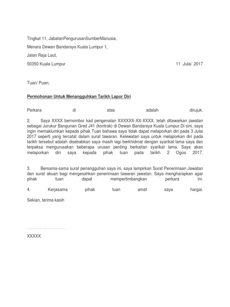 Lapor Diri Contoh Surat Rasmi Penangguhan