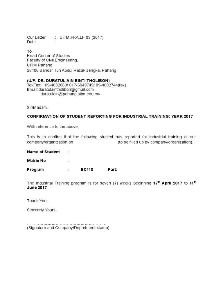 Contoh Dokumen Surat Lapor Diri Pelajar Polimas Industrial Training And Liaison Unit