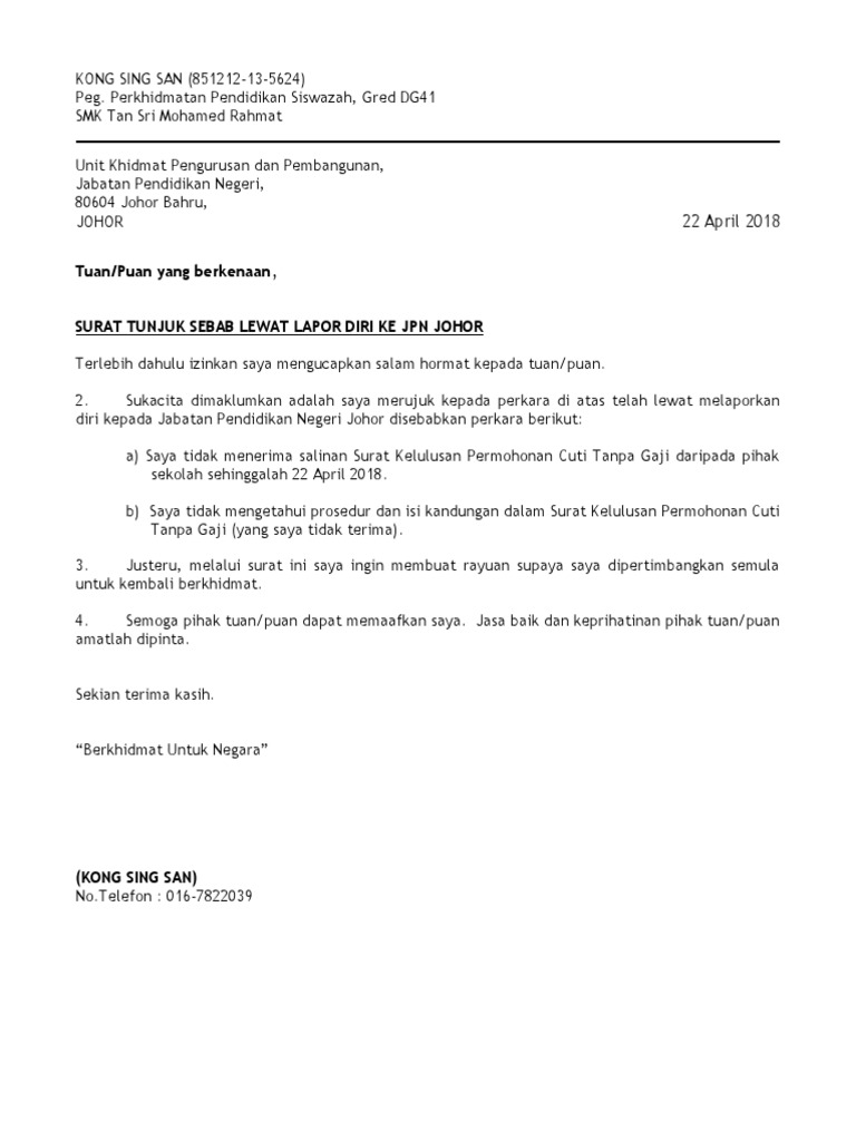 Surat Tunjuk Sebab Lewat Hantar Tuntutan Perjalanan Sip Pdf